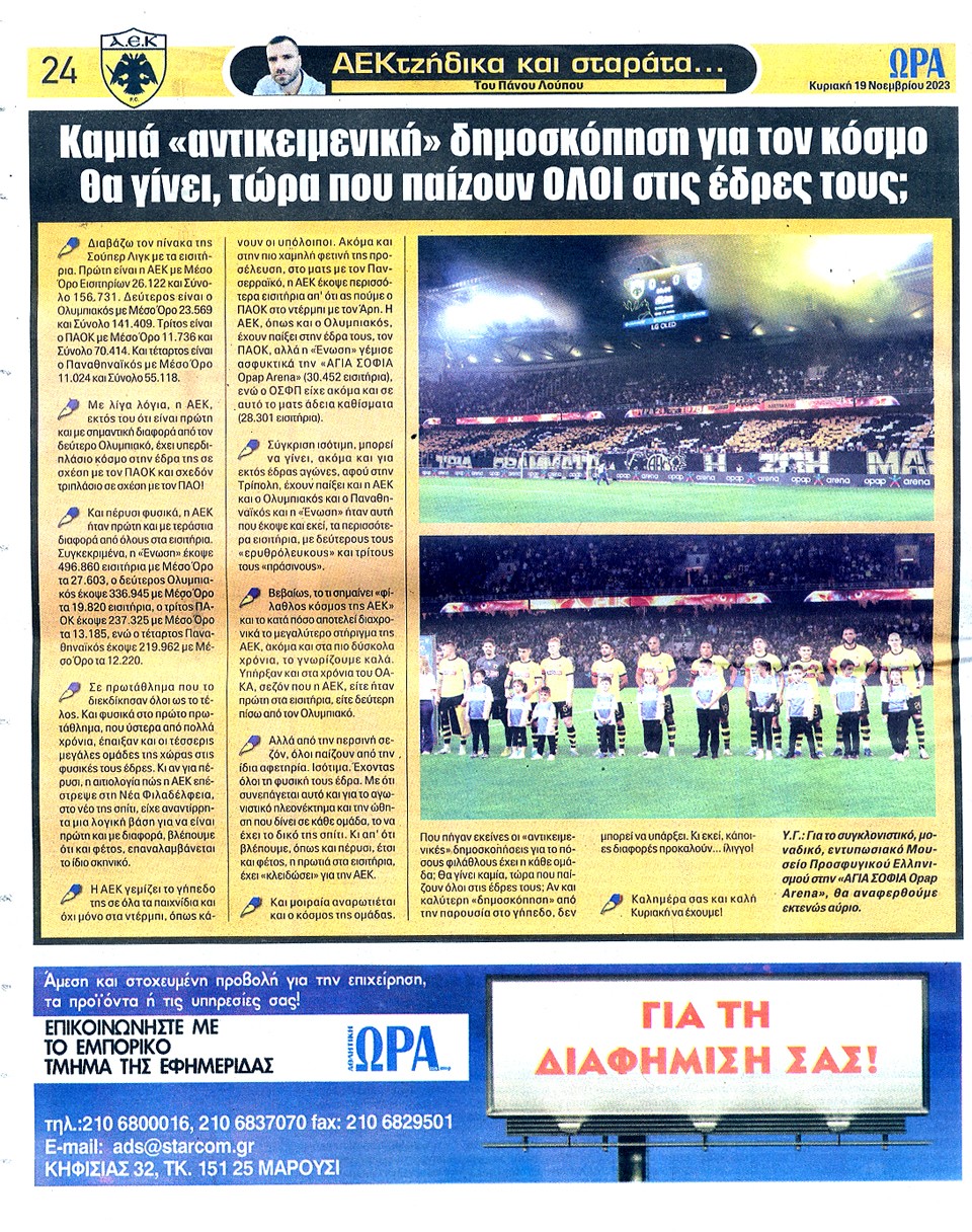 ΑΘΛΗΤΙΚΗ ΩΡΑ ΤΩΝ ΣΠΟΡ - 19 Νοεμβρίου 2023