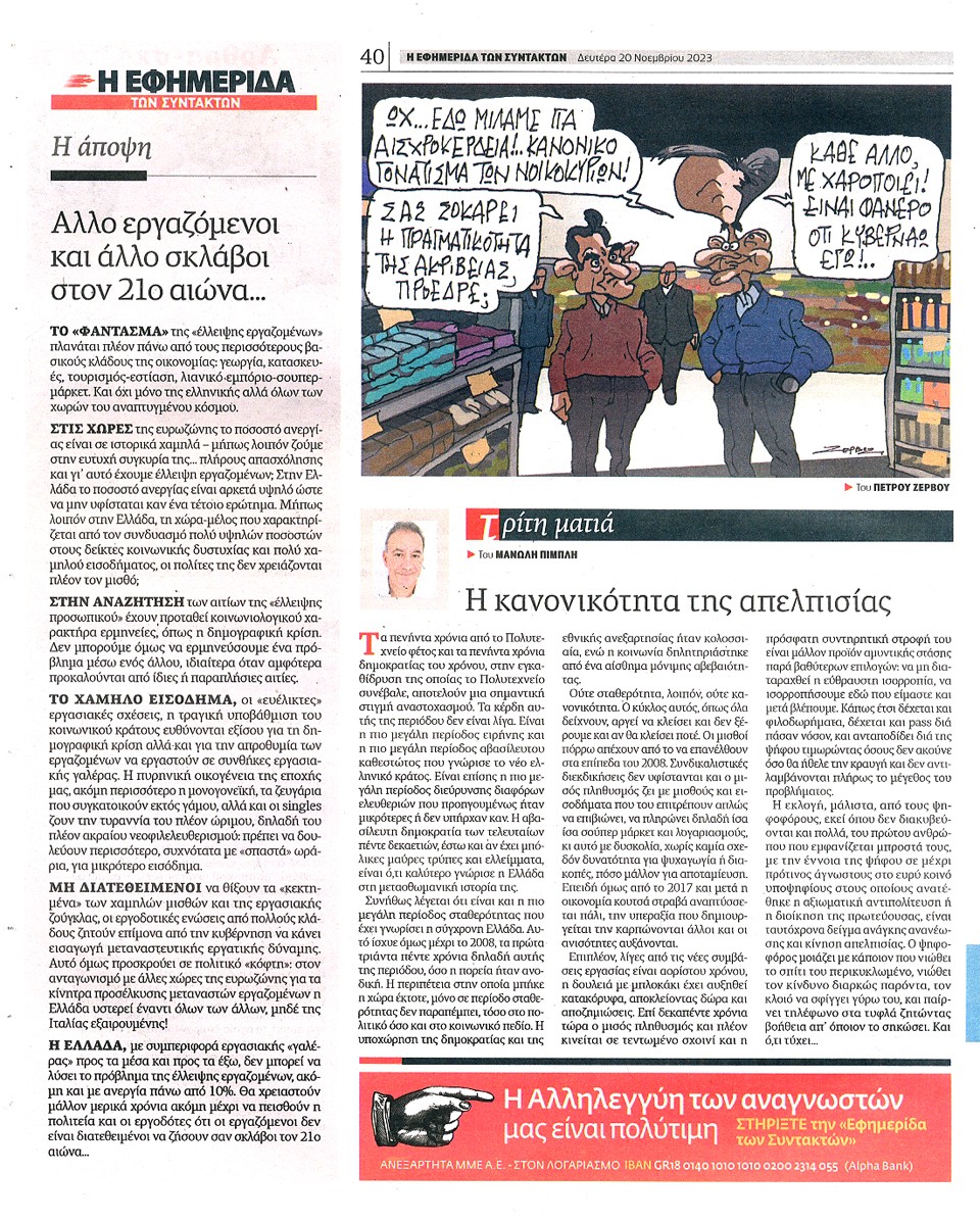 Η ΕΦΗΜΕΡΙΔΑ ΤΩΝ ΣΥΝΤΑΚΤΩΝ - 20 Νοεμβρίου 2023