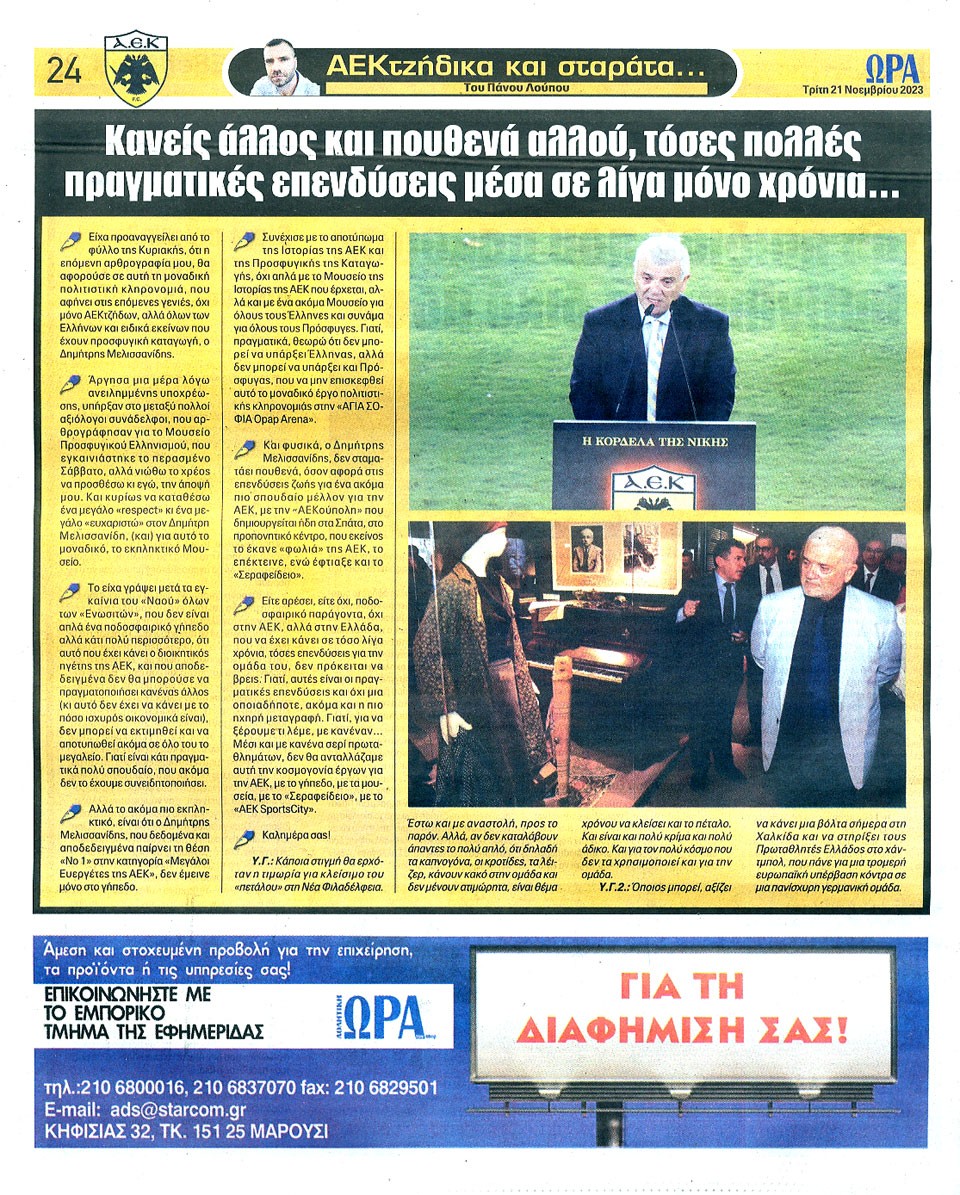 ΑΘΛΗΤΙΚΗ ΩΡΑ ΤΩΝ ΣΠΟΡ - 21 Νοεμβρίου 2023