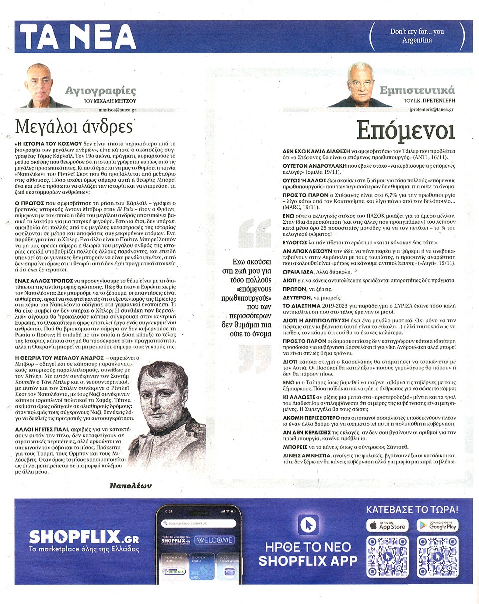 ΤΑ ΝΕΑ - 21 Νοεμβρίου 2023