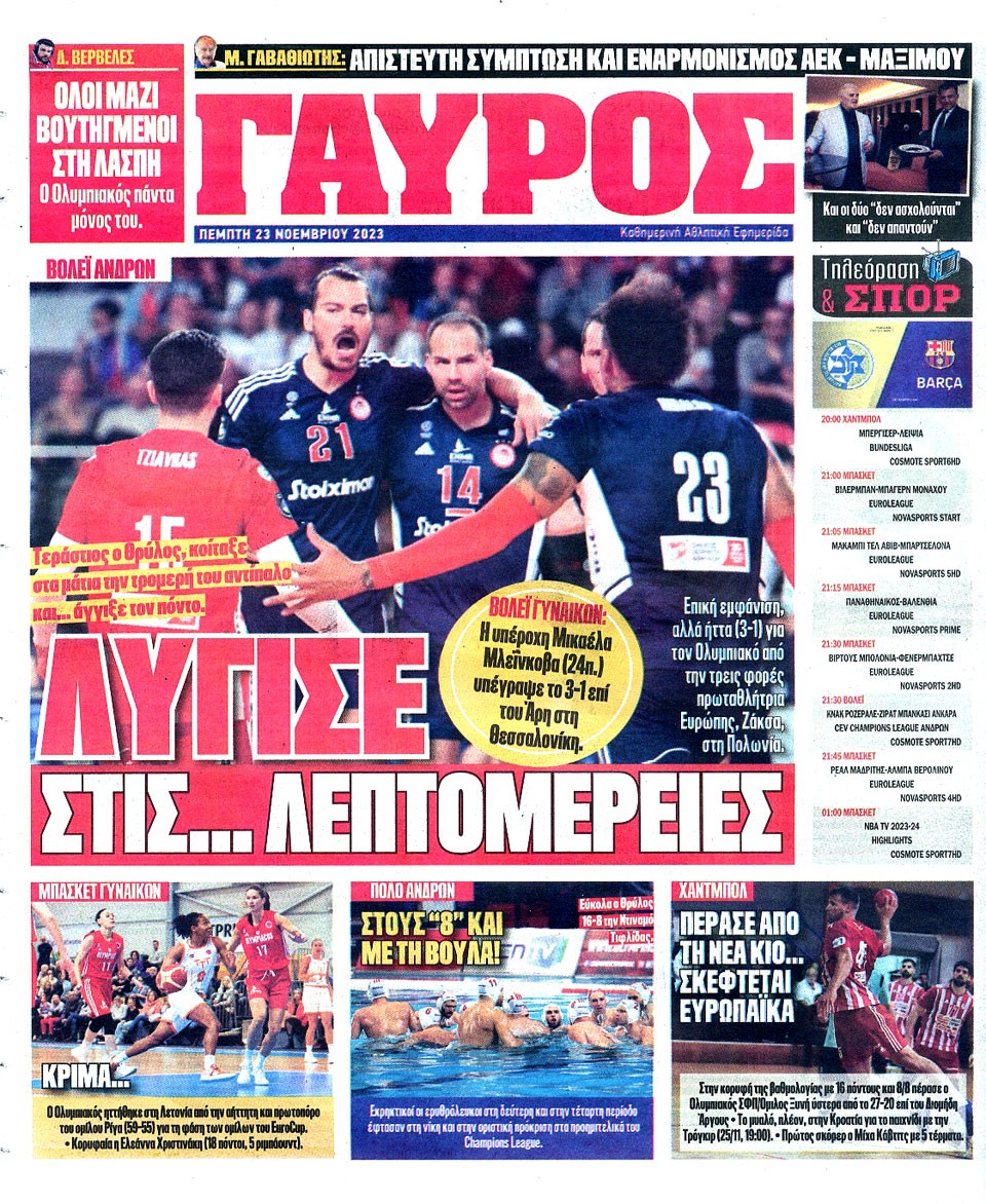 ΠΡΩΤΑΘΛΗΤΗΣ - 23 Νοεμβρίου 2023
