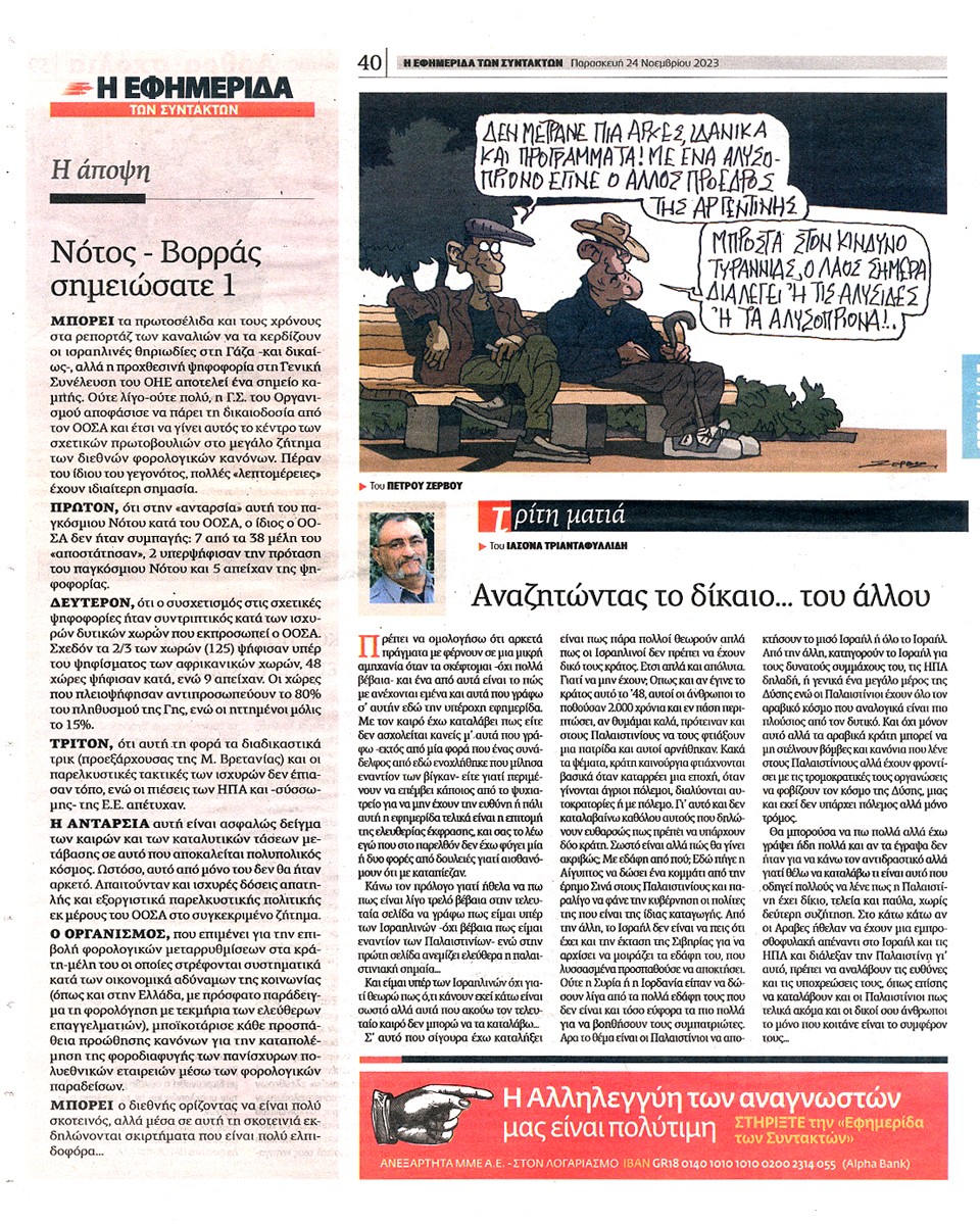 Η ΕΦΗΜΕΡΙΔΑ ΤΩΝ ΣΥΝΤΑΚΤΩΝ - 24 Νοεμβρίου 2023