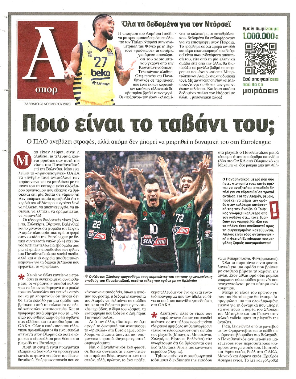 ΑΠΟΓΕΥΜΑΤΙΝΗ - 25 Νοεμβρίου 2023