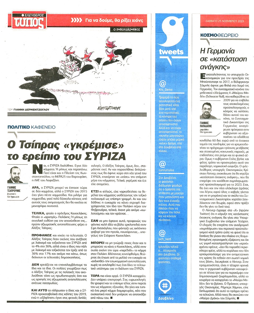 ΕΛΕΥΘΕΡΟΣ ΤΥΠΟΣ - 25 Νοεμβρίου 2023