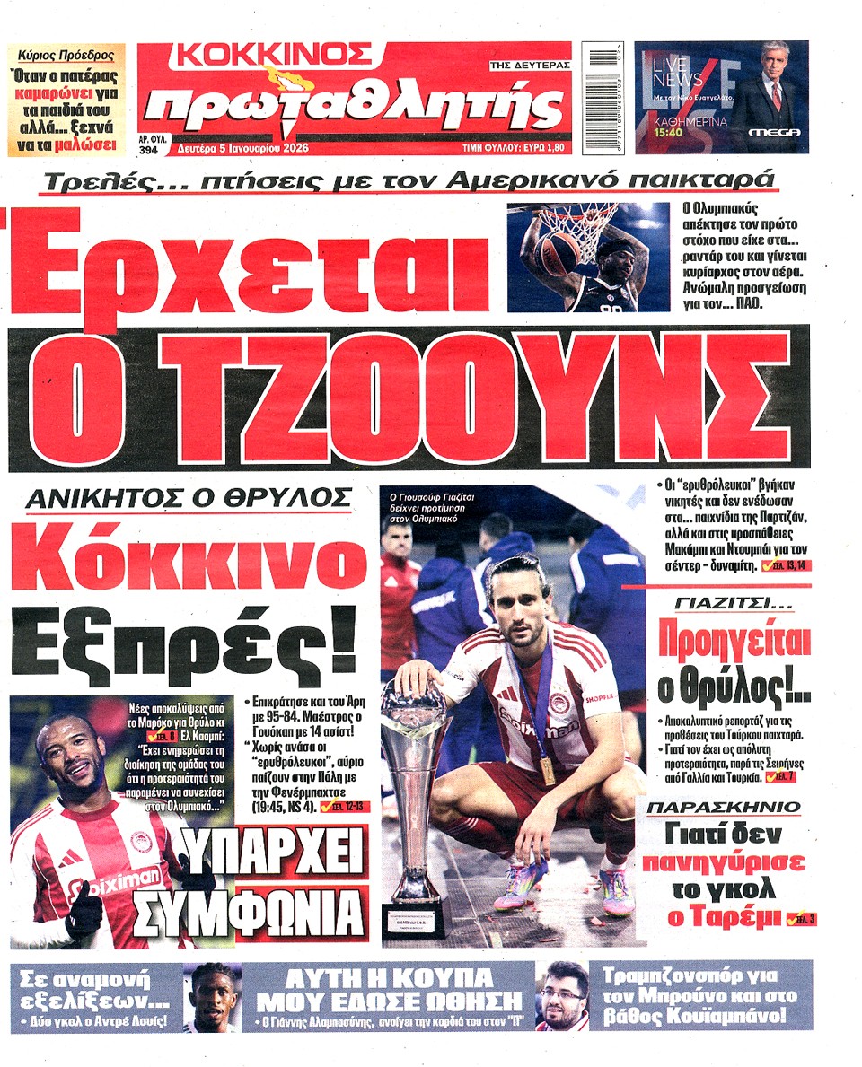 ΠΡΩΤΑΘΛΗΤΗΣ - 05 Ιανουαρίου 2026