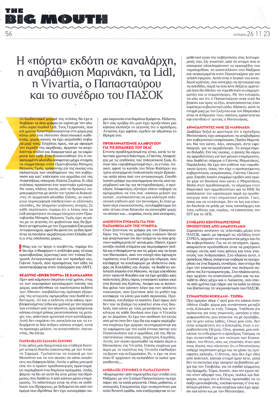 ΑΠΟΓΕΥΜΑΤΙΝΗ ΤΗΣ ΚΥΡΙΑΚΗΣ - 26 Νοεμβρίου 2023