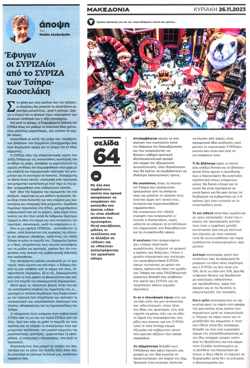 ΜΑΚΕΔΟΝΙΑ ΤΗΣ ΚΥΡΙΑΚΗΣ - 26 Νοεμβρίου 2023
