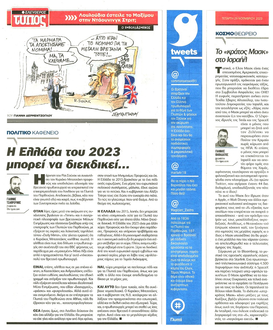ΕΛΕΥΘΕΡΟΣ ΤΥΠΟΣ - 29 Νοεμβρίου 2023