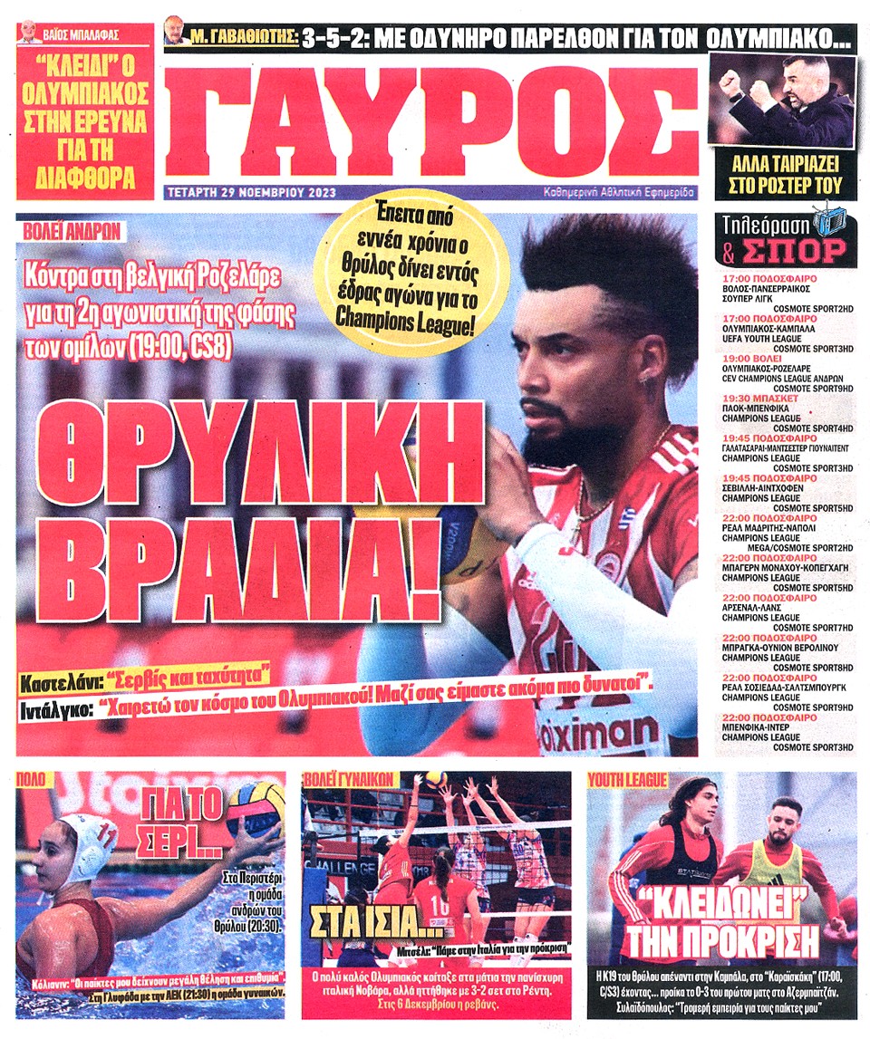 ΠΡΩΤΑΘΛΗΤΗΣ - 29 Νοεμβρίου 2023