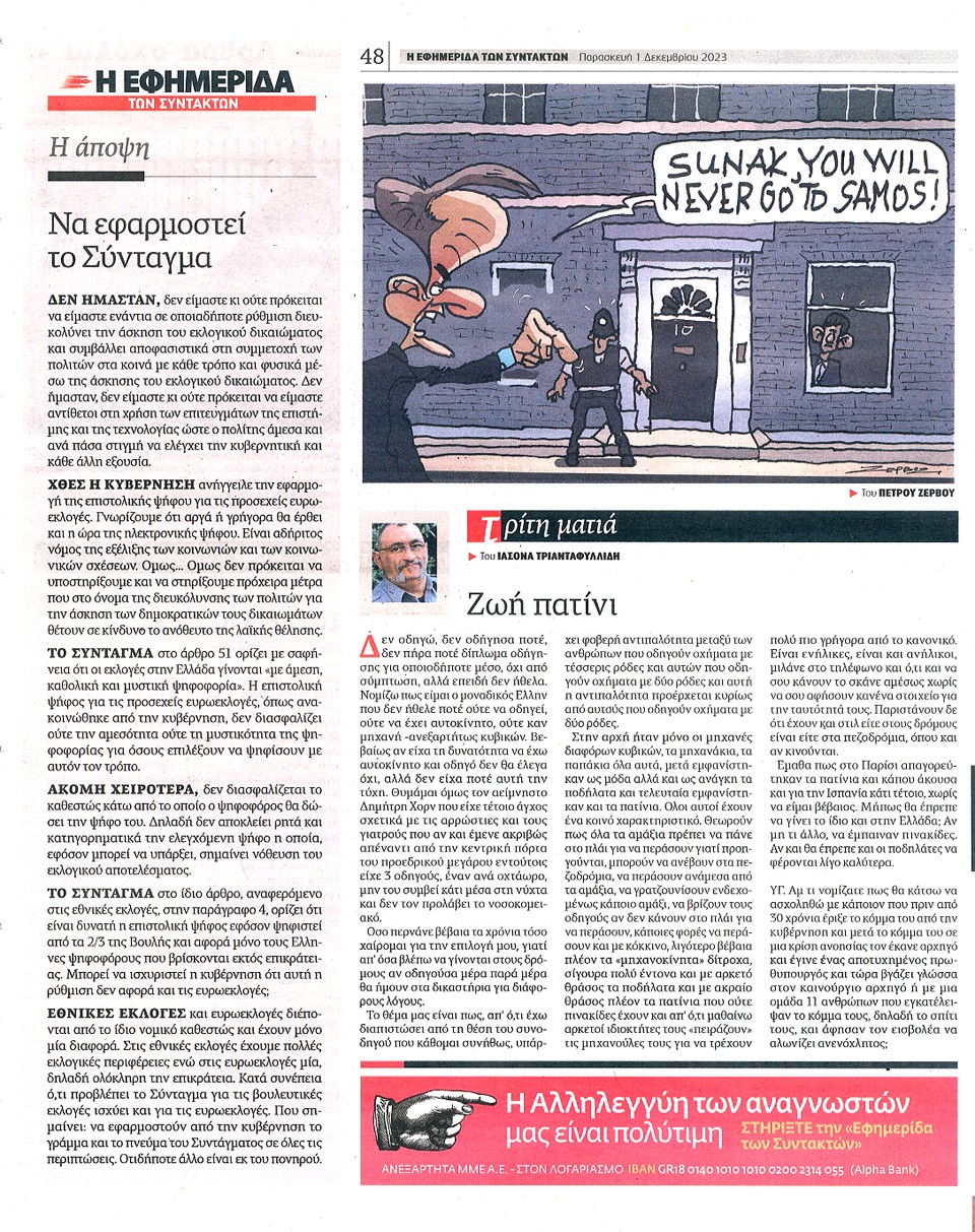 Η ΕΦΗΜΕΡΙΔΑ ΤΩΝ ΣΥΝΤΑΚΤΩΝ - 01 Δεκεμβρίου 2023