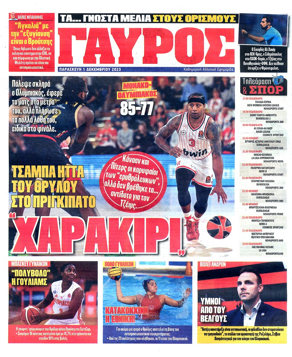 ΠΡΩΤΑΘΛΗΤΗΣ - 01 Δεκεμβρίου 2023