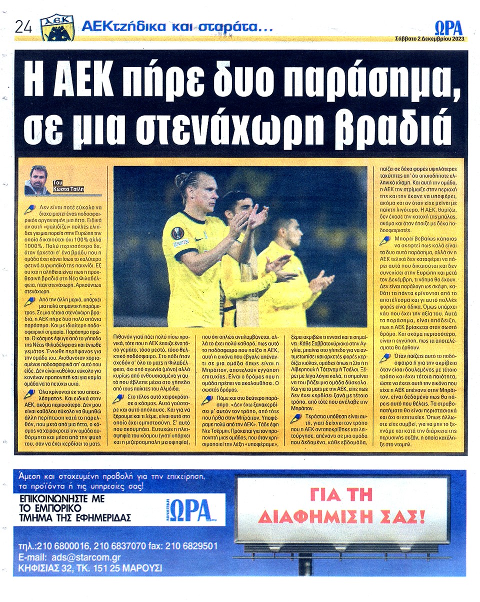 ΑΘΛΗΤΙΚΗ ΩΡΑ ΤΩΝ ΣΠΟΡ - 02 Δεκεμβρίου 2023