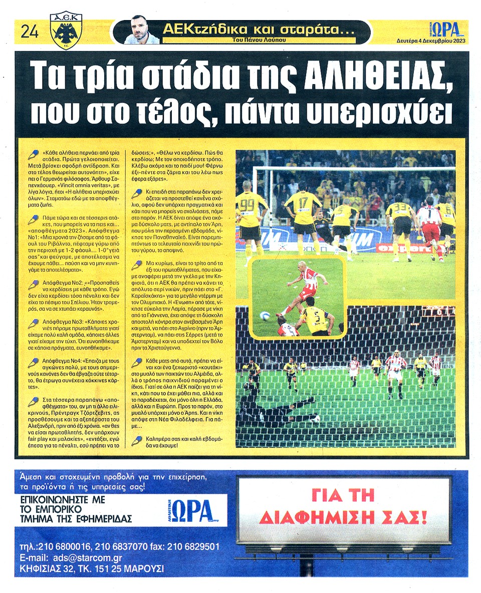 ΑΘΛΗΤΙΚΗ ΩΡΑ ΤΩΝ ΣΠΟΡ - 04 Δεκεμβρίου 2023