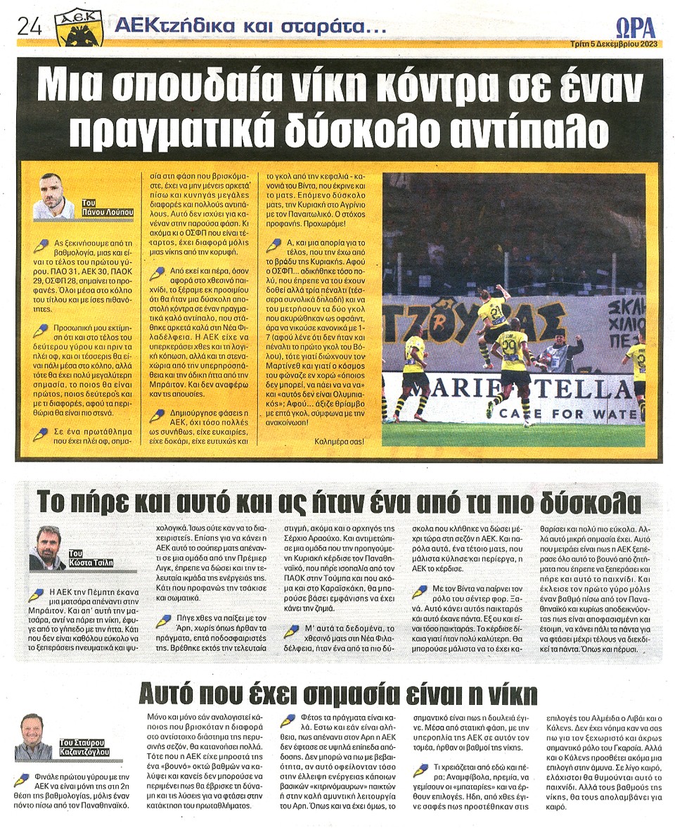 ΑΘΛΗΤΙΚΗ ΩΡΑ ΤΩΝ ΣΠΟΡ - 05 Δεκεμβρίου 2023