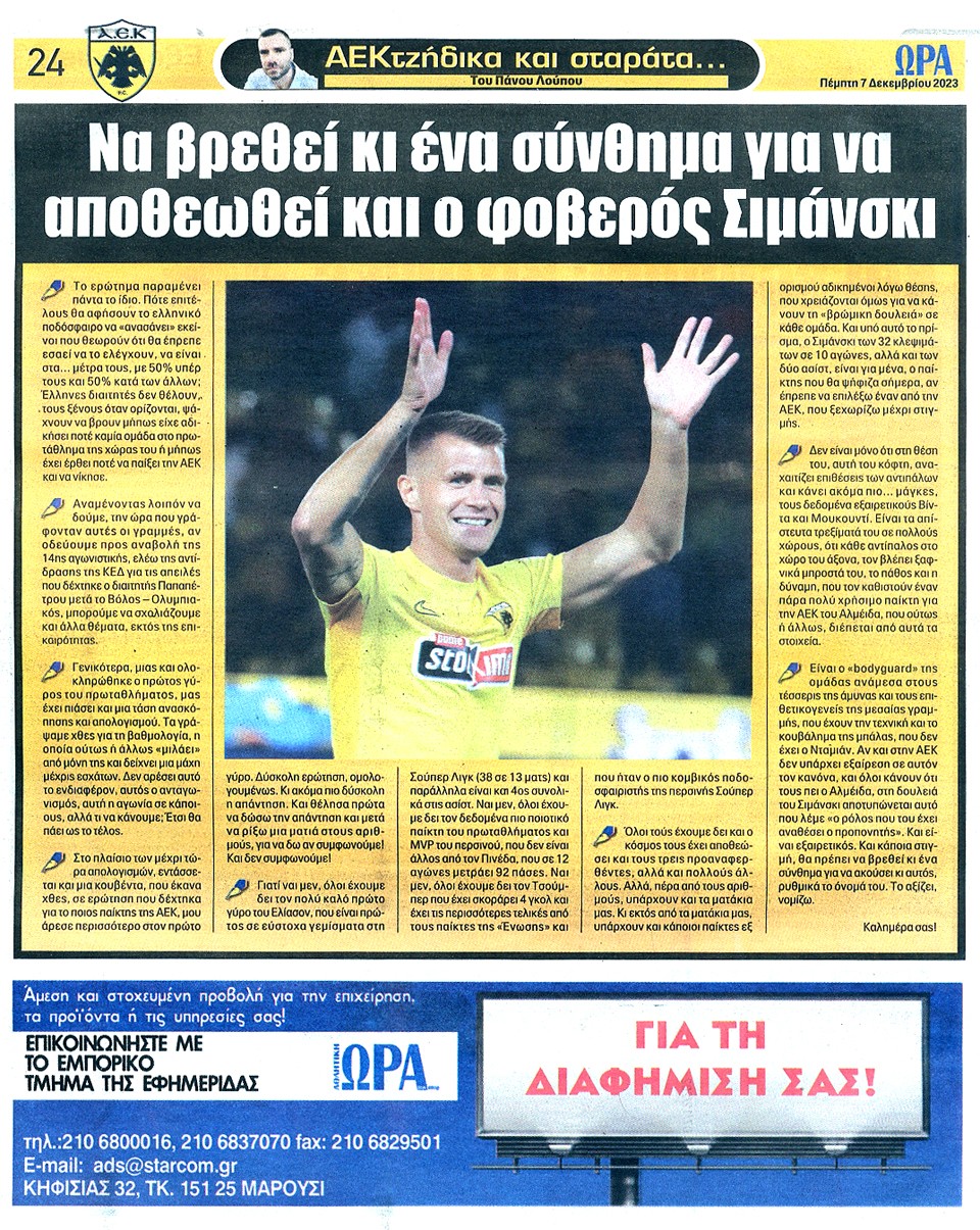 ΑΘΛΗΤΙΚΗ ΩΡΑ ΤΩΝ ΣΠΟΡ - 07 Δεκεμβρίου 2023