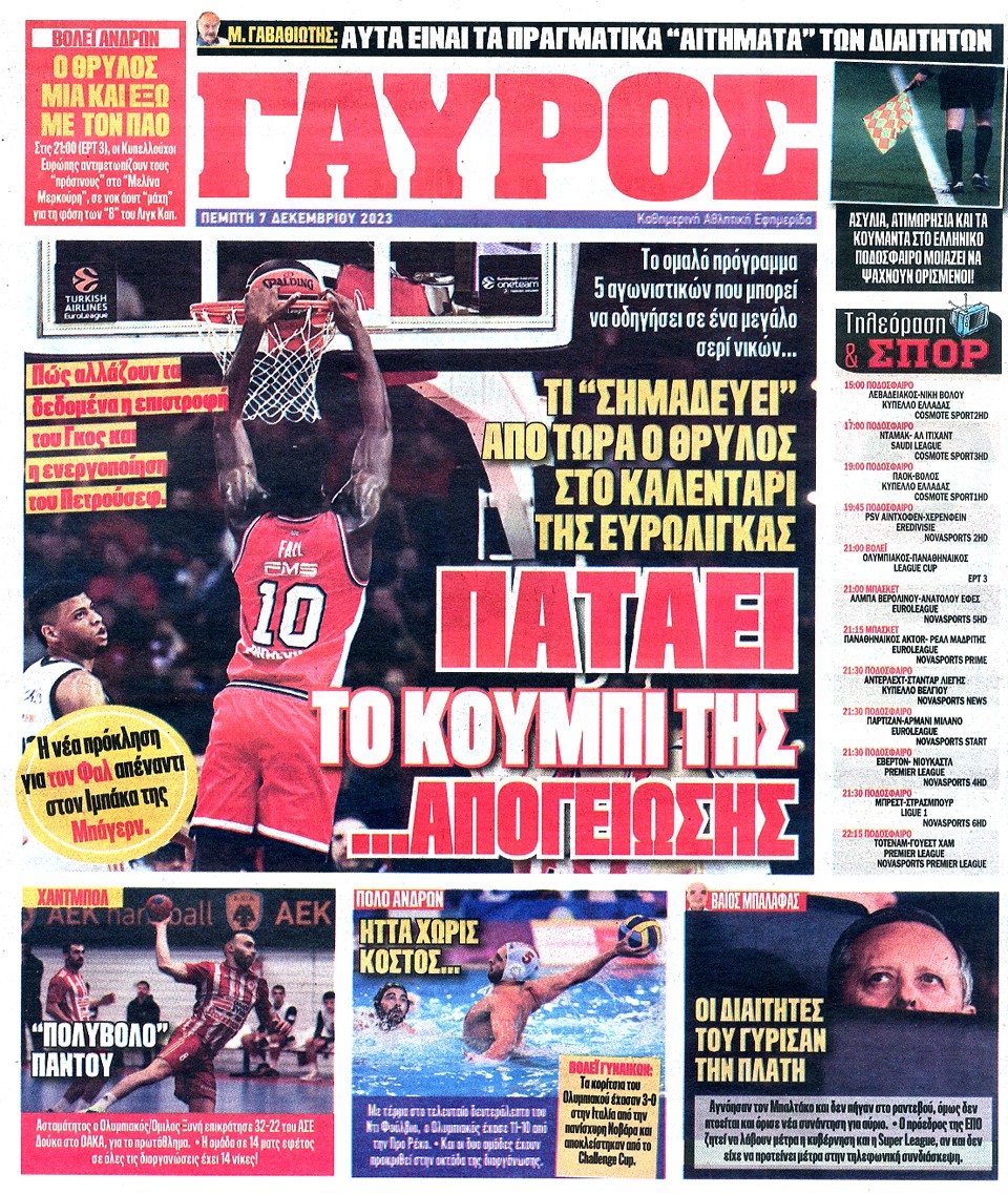 ΠΡΩΤΑΘΛΗΤΗΣ - 07 Δεκεμβρίου 2023