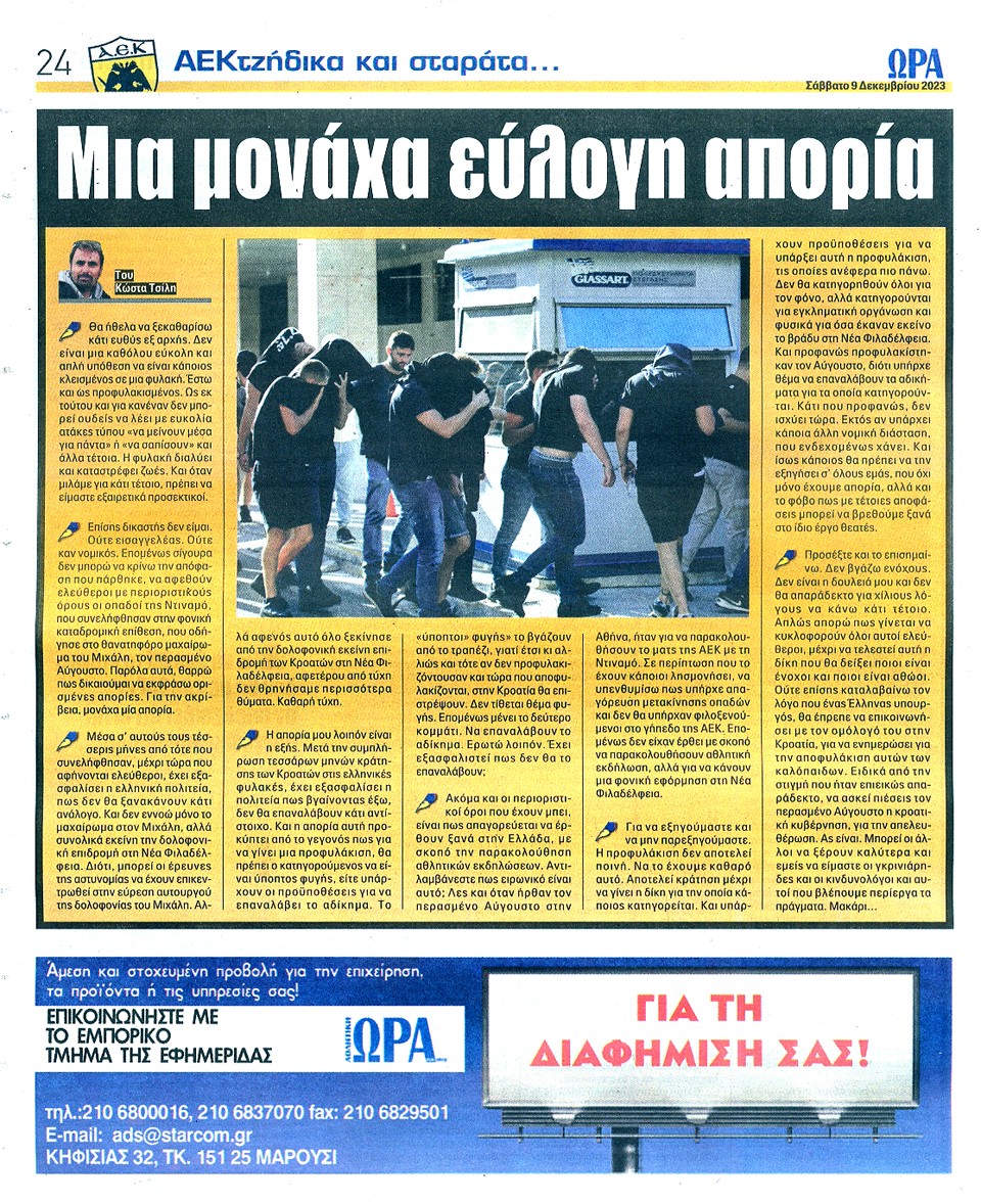 ΑΘΛΗΤΙΚΗ ΩΡΑ ΤΩΝ ΣΠΟΡ - 09 Δεκεμβρίου 2023