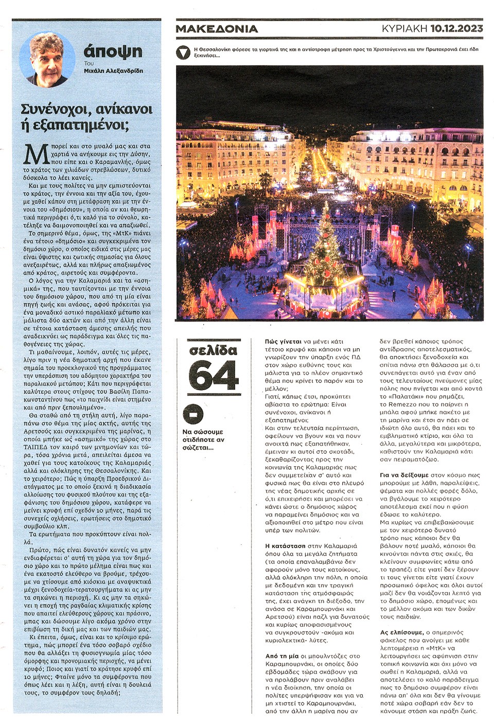 ΜΑΚΕΔΟΝΙΑ ΤΗΣ ΚΥΡΙΑΚΗΣ - 10 Δεκεμβρίου 2023