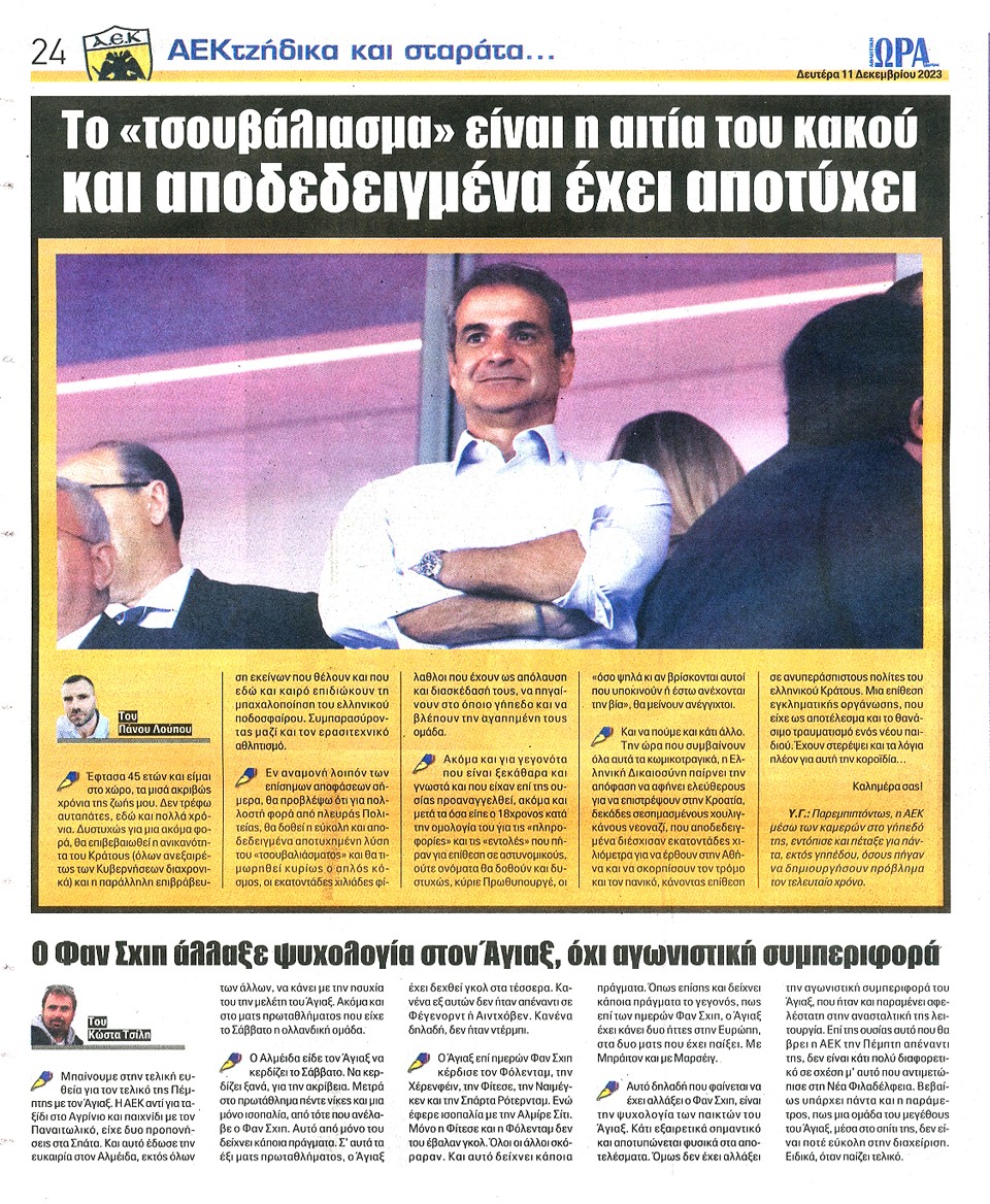 ΑΘΛΗΤΙΚΗ ΩΡΑ ΤΩΝ ΣΠΟΡ - 11 Δεκεμβρίου 2023