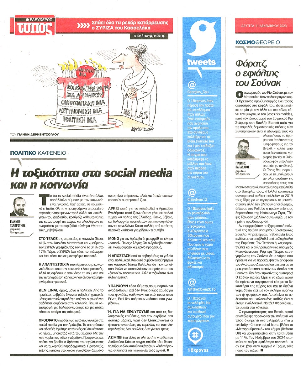 ΕΛΕΥΘΕΡΟΣ ΤΥΠΟΣ - 11 Δεκεμβρίου 2023