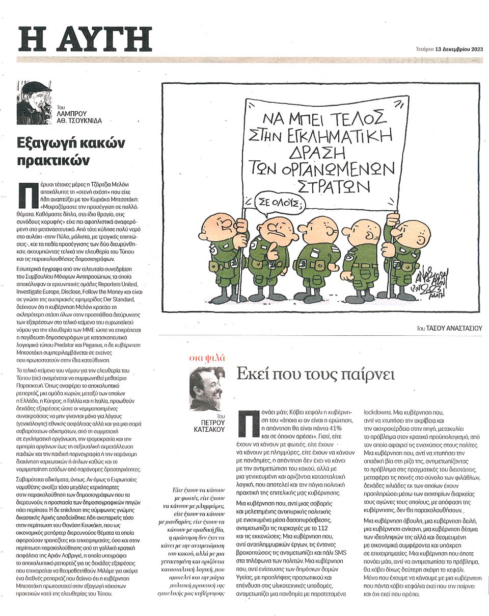 Η ΑΥΓΗ - 13 Δεκεμβρίου 2023