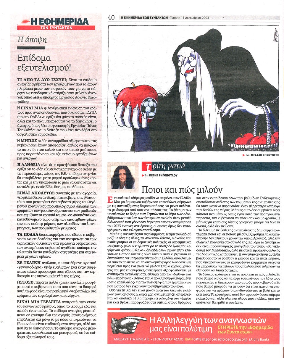 Η ΕΦΗΜΕΡΙΔΑ ΤΩΝ ΣΥΝΤΑΚΤΩΝ - 13 Δεκεμβρίου 2023