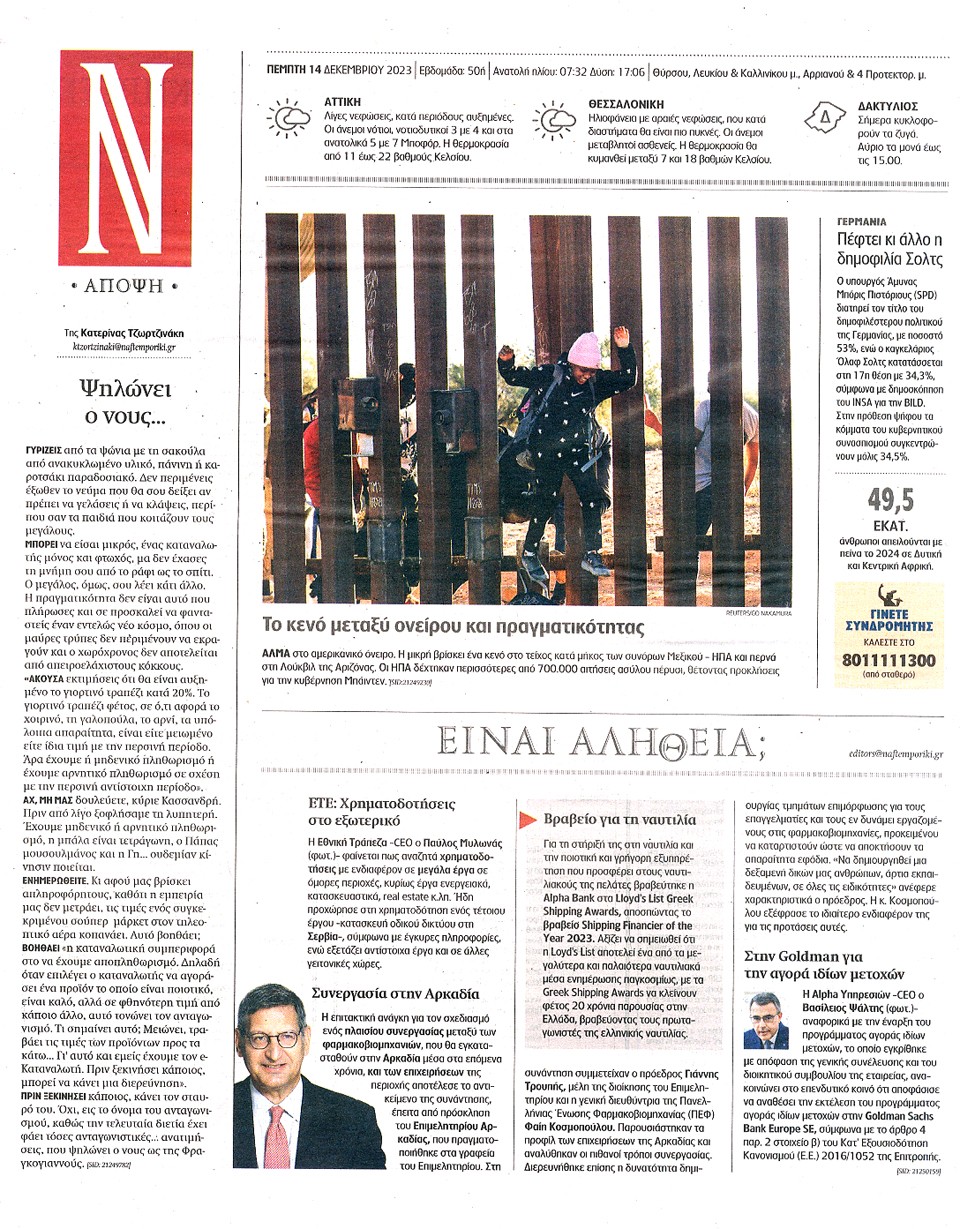 ΝΑΥΤΕΜΠΟΡΙΚΗ - 14 Δεκεμβρίου 2023