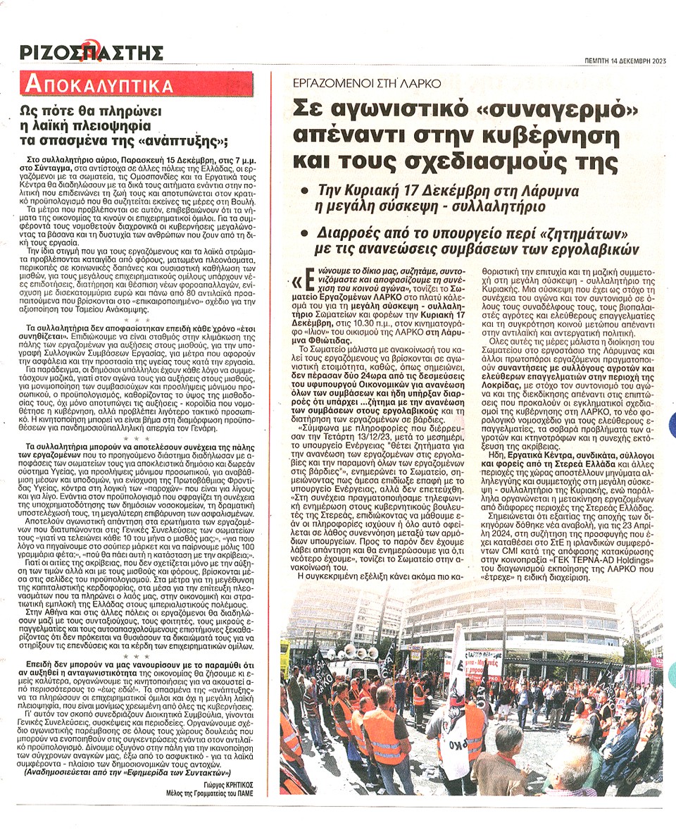 ΡΙΖΟΣΠΑΣΤΗΣ - 14 Δεκεμβρίου 2023
