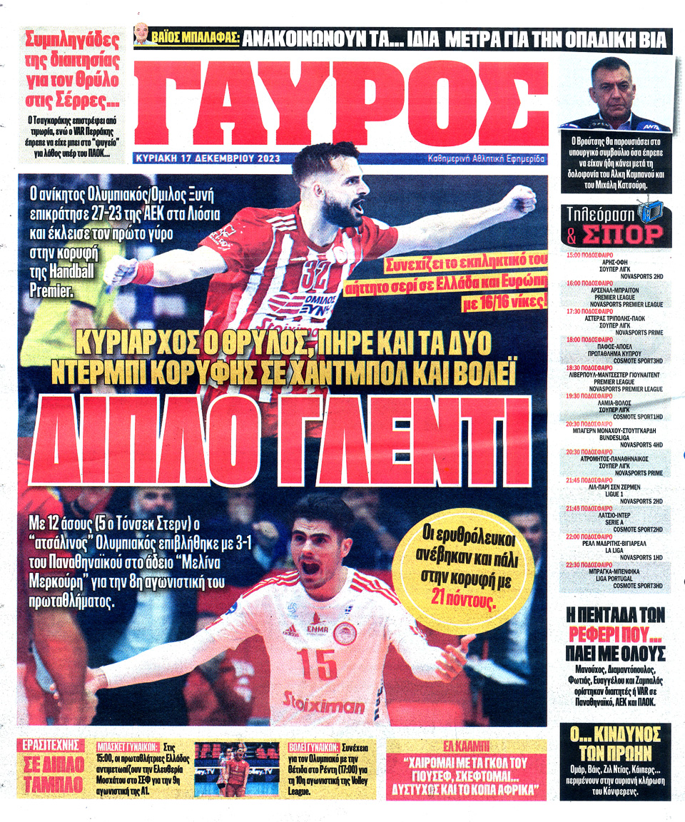 ΠΡΩΤΑΘΛΗΤΗΣ - 17 Δεκεμβρίου 2023