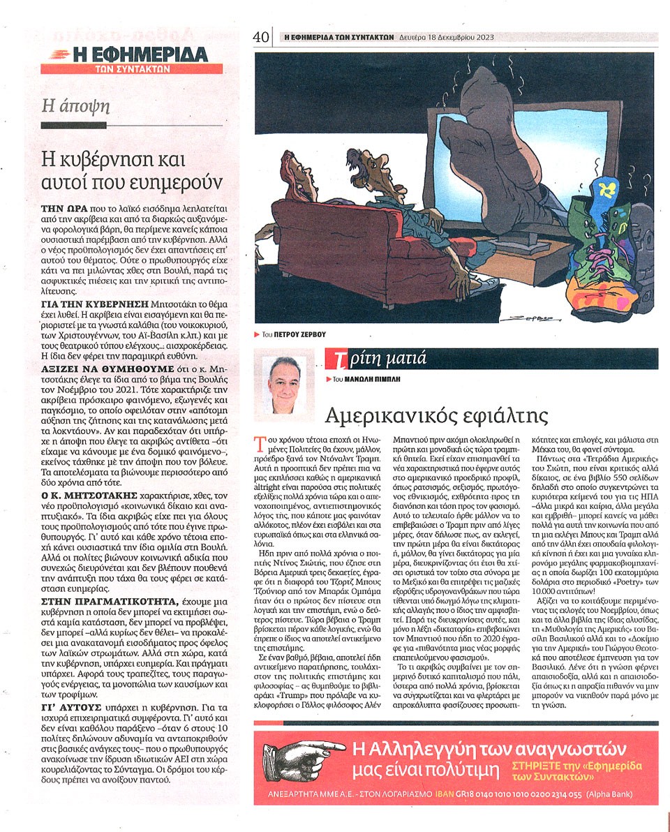 Η ΕΦΗΜΕΡΙΔΑ ΤΩΝ ΣΥΝΤΑΚΤΩΝ - 18 Δεκεμβρίου 2023