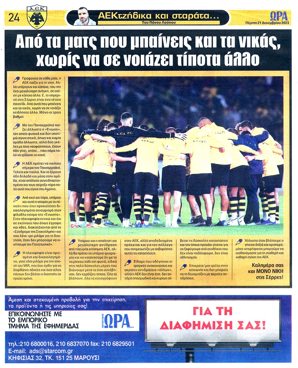 ΑΘΛΗΤΙΚΗ ΩΡΑ ΤΩΝ ΣΠΟΡ - 21 Δεκεμβρίου 2023