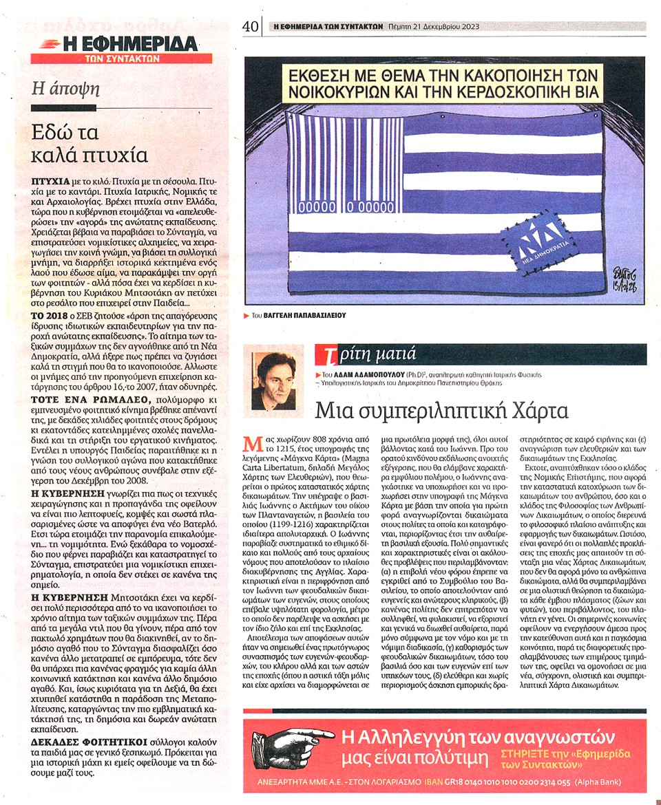 Η ΕΦΗΜΕΡΙΔΑ ΤΩΝ ΣΥΝΤΑΚΤΩΝ - 21 Δεκεμβρίου 2023