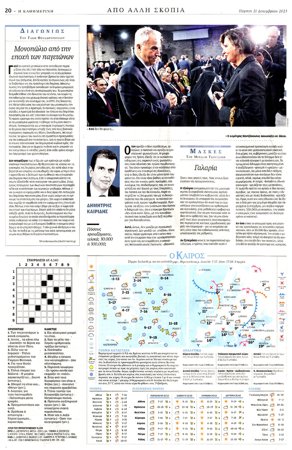 ΚΑΘΗΜΕΡΙΝΗ - 21 Δεκεμβρίου 2023