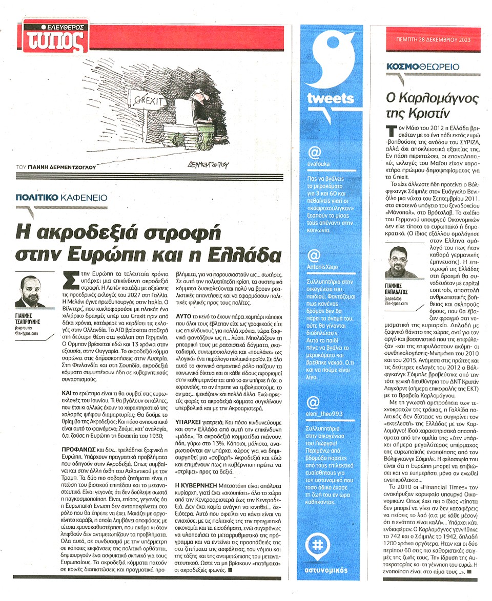 ΕΛΕΥΘΕΡΟΣ ΤΥΠΟΣ - 28 Δεκεμβρίου 2023