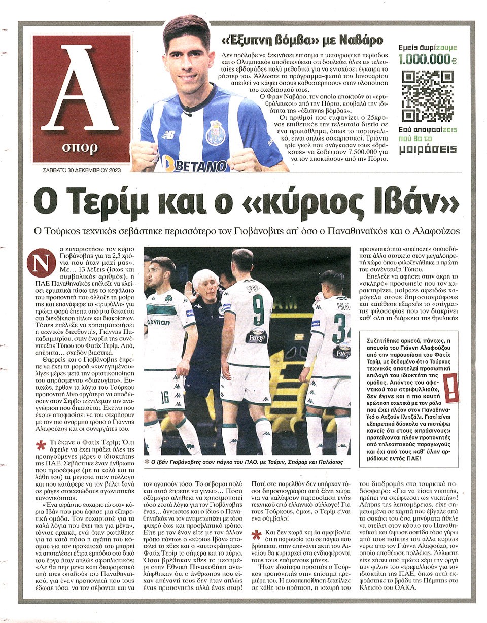 ΑΠΟΓΕΥΜΑΤΙΝΗ - 30 Δεκεμβρίου 2023