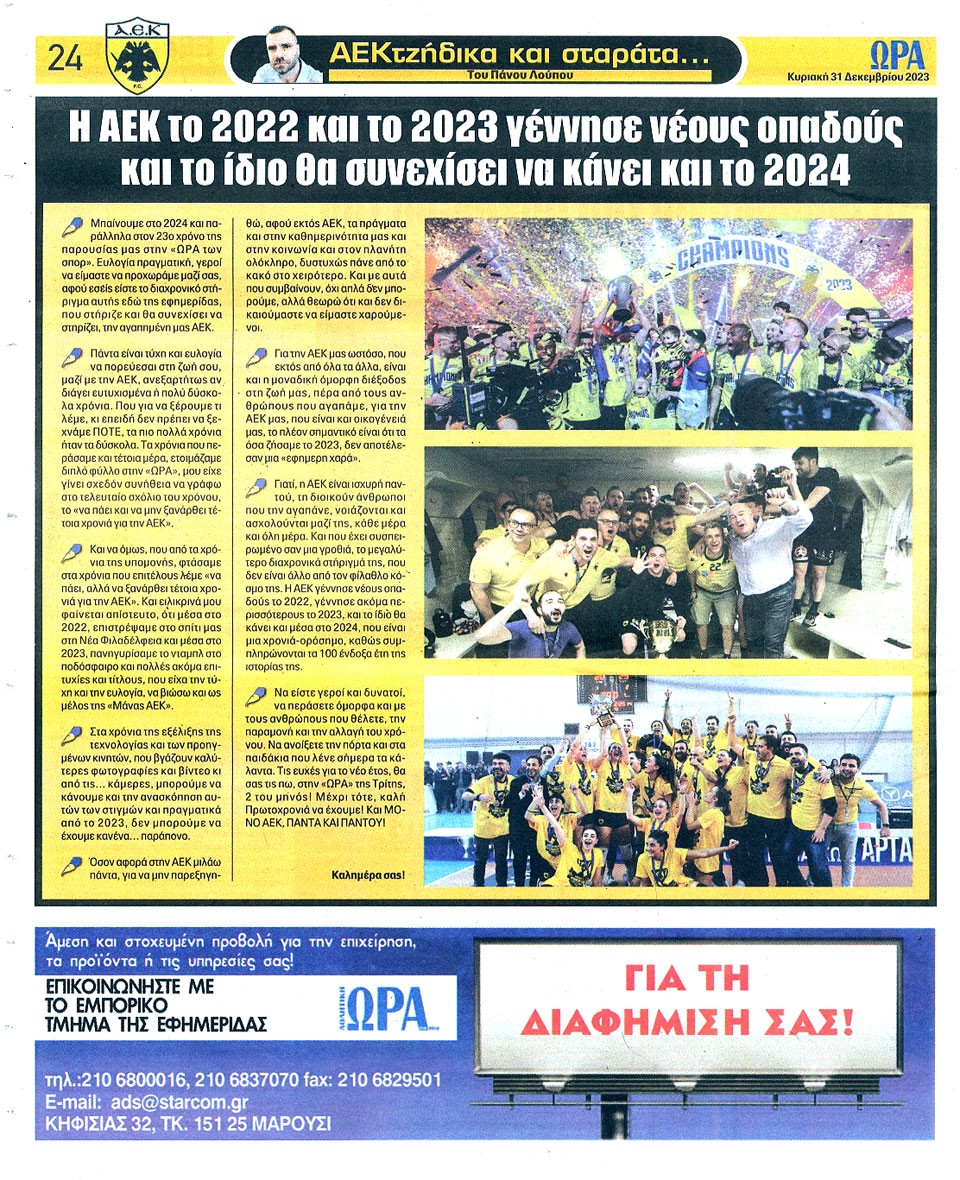 ΑΘΛΗΤΙΚΗ ΩΡΑ ΤΩΝ ΣΠΟΡ - 31 Δεκεμβρίου 2023