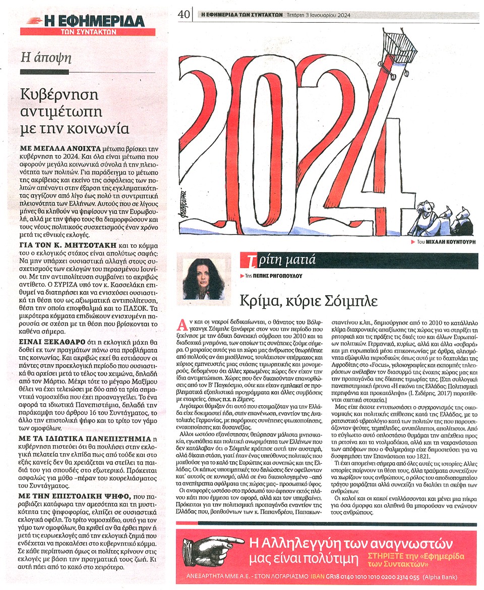 Η ΕΦΗΜΕΡΙΔΑ ΤΩΝ ΣΥΝΤΑΚΤΩΝ - 03 Ιανουαρίου 2024