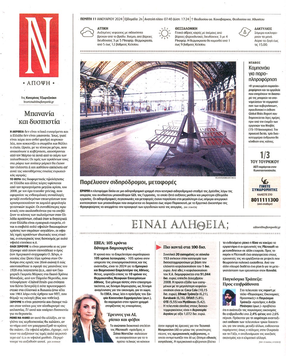 ΝΑΥΤΕΜΠΟΡΙΚΗ - 11 Ιανουαρίου 2024