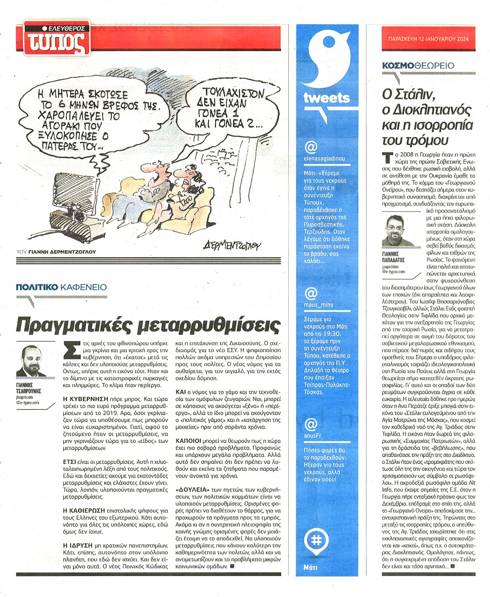 ΕΛΕΥΘΕΡΟΣ ΤΥΠΟΣ - 12 Ιανουαρίου 2024