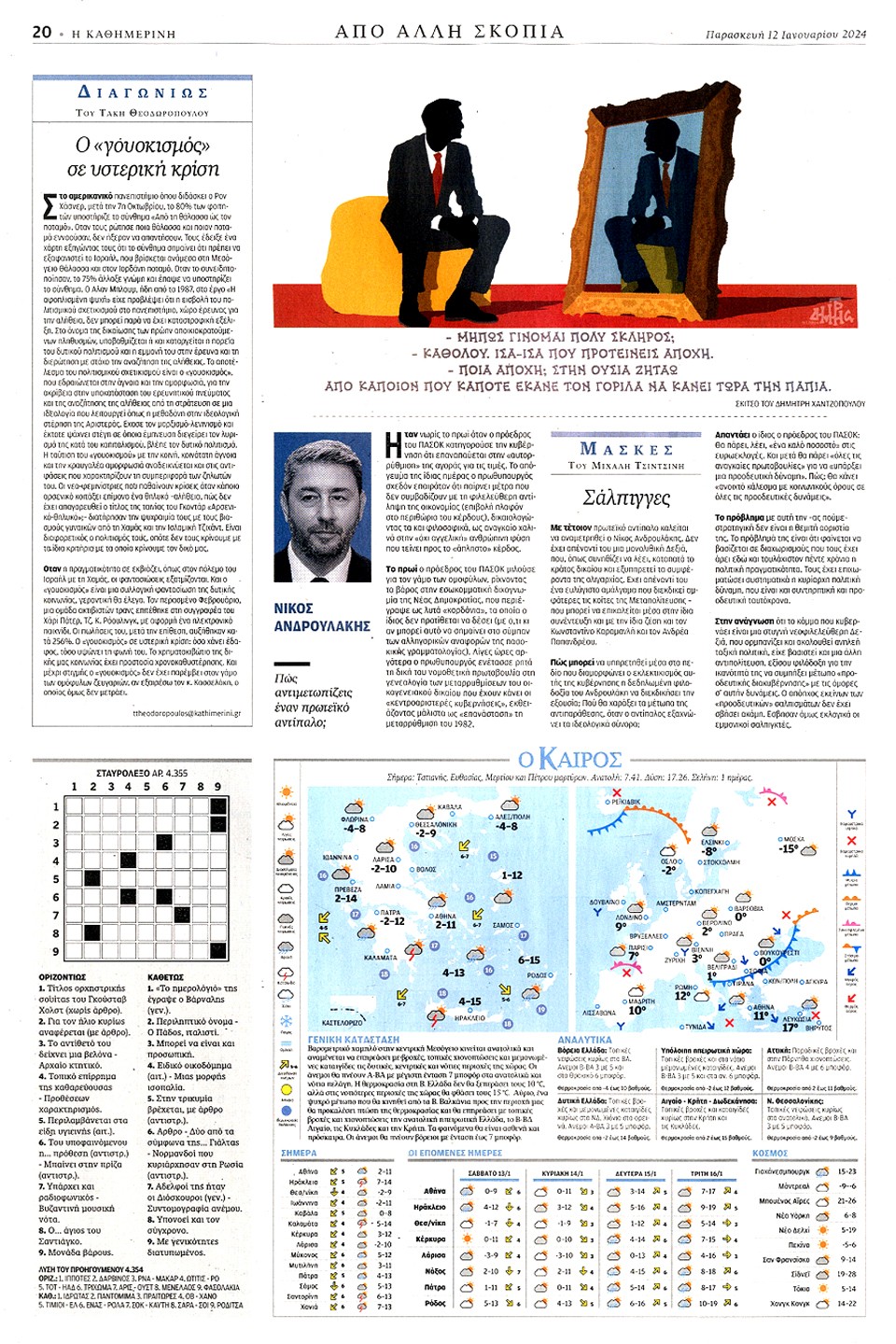 ΚΑΘΗΜΕΡΙΝΗ - 12 Ιανουαρίου 2024
