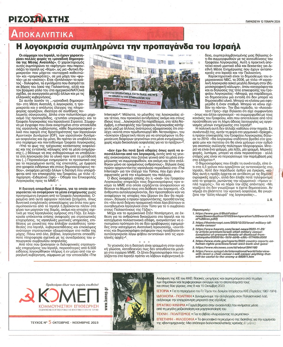 ΡΙΖΟΣΠΑΣΤΗΣ - 12 Ιανουαρίου 2024