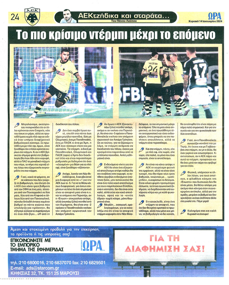 ΑΘΛΗΤΙΚΗ ΩΡΑ ΤΩΝ ΣΠΟΡ - 14 Ιανουαρίου 2024