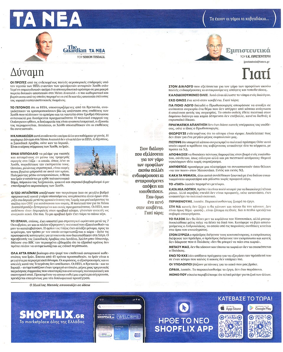 ΤΑ ΝΕΑ - 15 Ιανουαρίου 2024