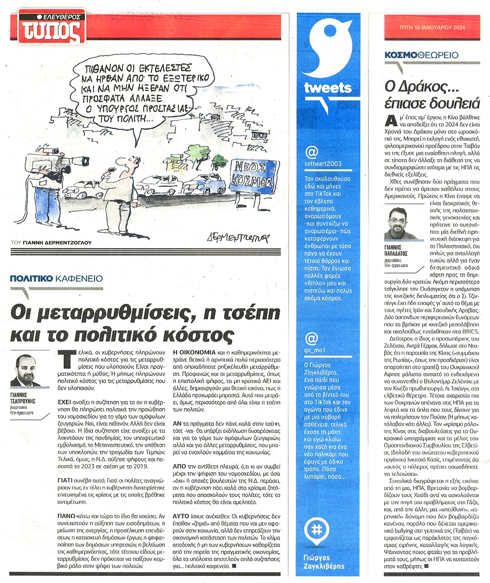 ΕΛΕΥΘΕΡΟΣ ΤΥΠΟΣ - 16 Ιανουαρίου 2024