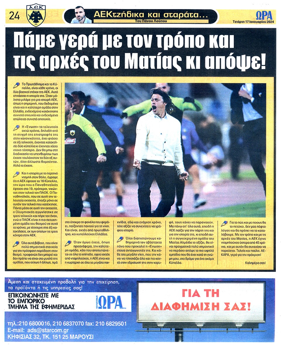 ΑΘΛΗΤΙΚΗ ΩΡΑ ΤΩΝ ΣΠΟΡ - 17 Ιανουαρίου 2024