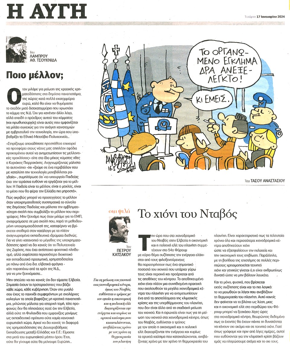 Η ΑΥΓΗ - 17 Ιανουαρίου 2024