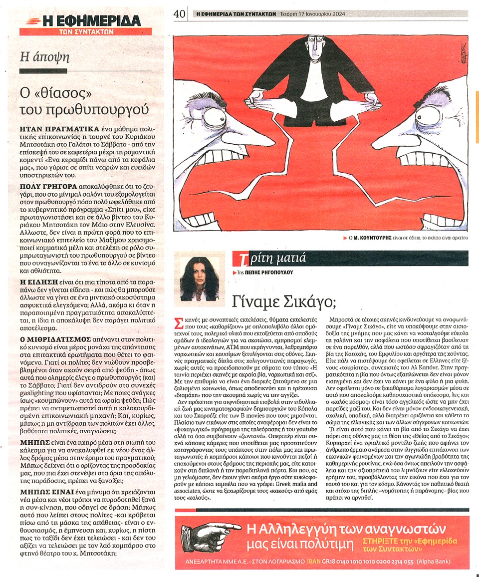 Η ΕΦΗΜΕΡΙΔΑ ΤΩΝ ΣΥΝΤΑΚΤΩΝ - 17 Ιανουαρίου 2024