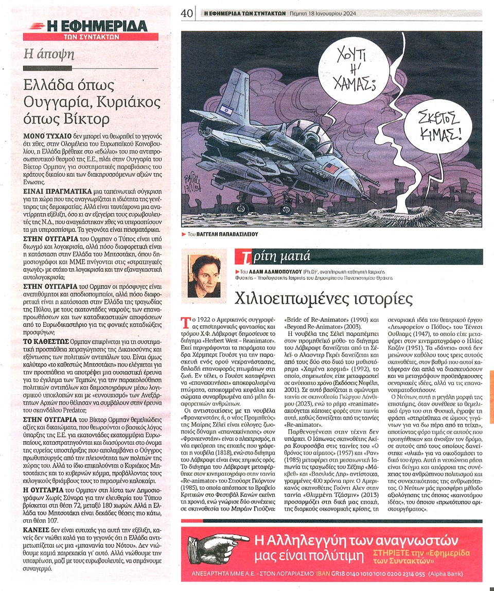Η ΕΦΗΜΕΡΙΔΑ ΤΩΝ ΣΥΝΤΑΚΤΩΝ - 18 Ιανουαρίου 2024
