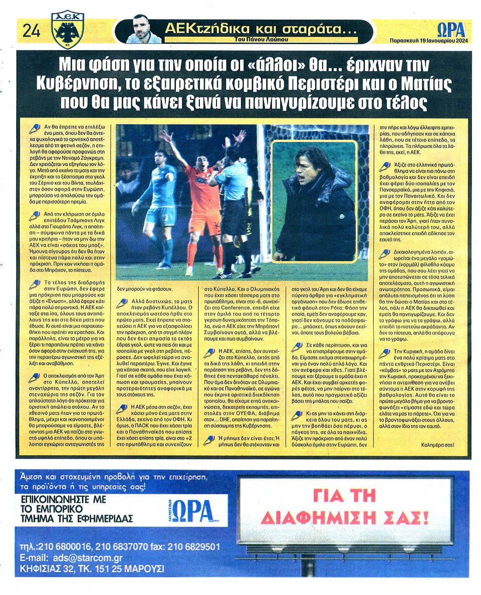 ΑΘΛΗΤΙΚΗ ΩΡΑ ΤΩΝ ΣΠΟΡ - 19 Ιανουαρίου 2024