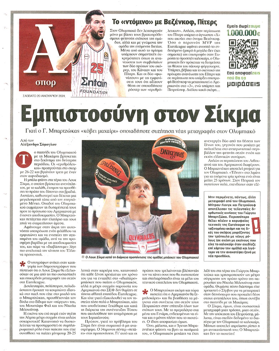 ΑΠΟΓΕΥΜΑΤΙΝΗ - 20 Ιανουαρίου 2024